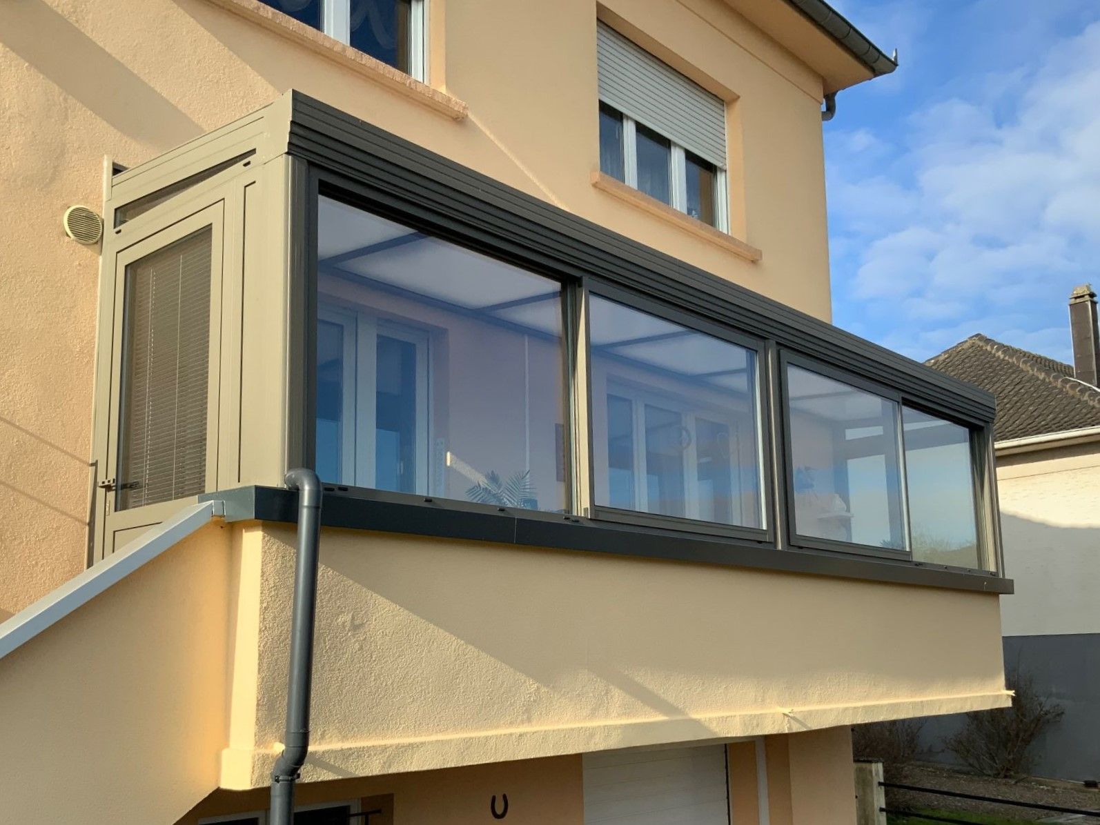 Avec son petit côté atelier, cette véranda mono pente affiche un style unique, à la fois classique par ses lignes et moderne par sa structure aluminium. La toiture mono pente renforce cet esprit loft, offrant une esthétique épurée qui s’intègre aussi bien aux architectures traditionnelles qu’aux maisons contemporaines. Un véritable espace lumineux et tendance, où charme industriel et élégance actuelle se rencontrent harmonieusement.